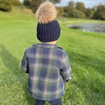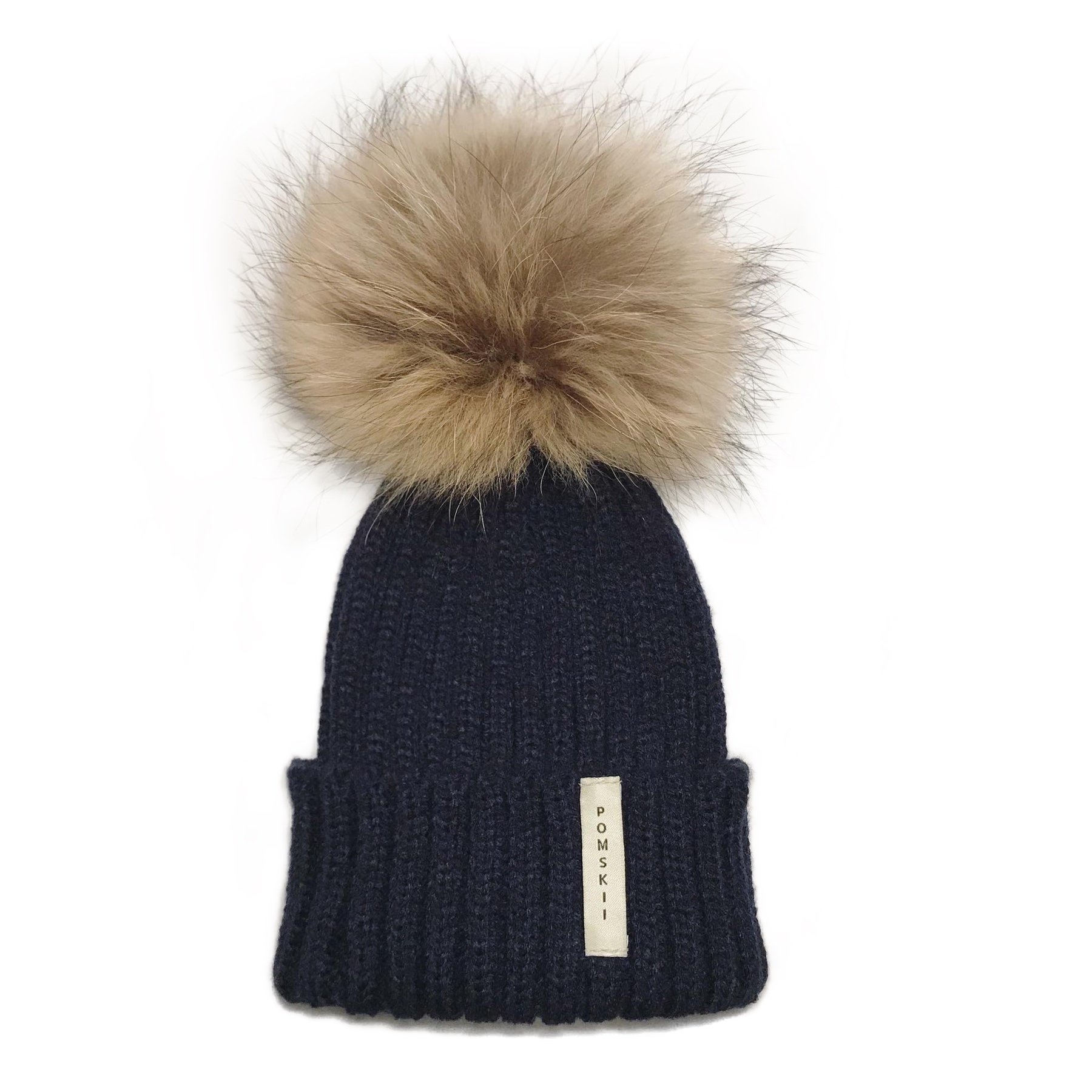 Children's luxury fur pom pom bobble hat in Navy with natural brown Pom.